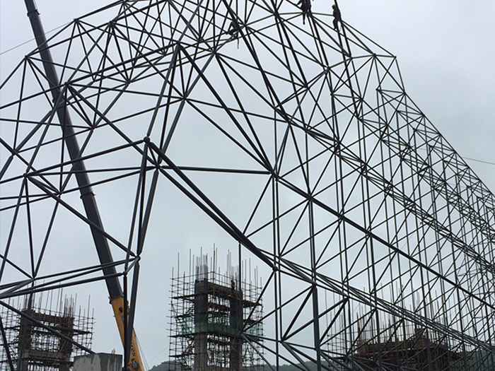 4.满堂脚手架是最有利的 螺栓球网架临河施工平台,它在确保临河施工安全的同时,又能承当部分网架重量,有效防止网格下沉变形,以及调整网架安装过程中的误差积累和支座与预埋件之间的偏离。